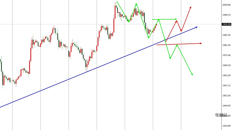综合以上分析,张融亿认为:我们可以采取区间收缩震荡的策略来应对这种局面。在久盘不破高的情况下,不排除短线先回撤确认支撑的可能。操作上考虑回撤布局多单为主,高空为辅,上方关注1998-2007美元阻力,下方关注1986-1980美元支撑。