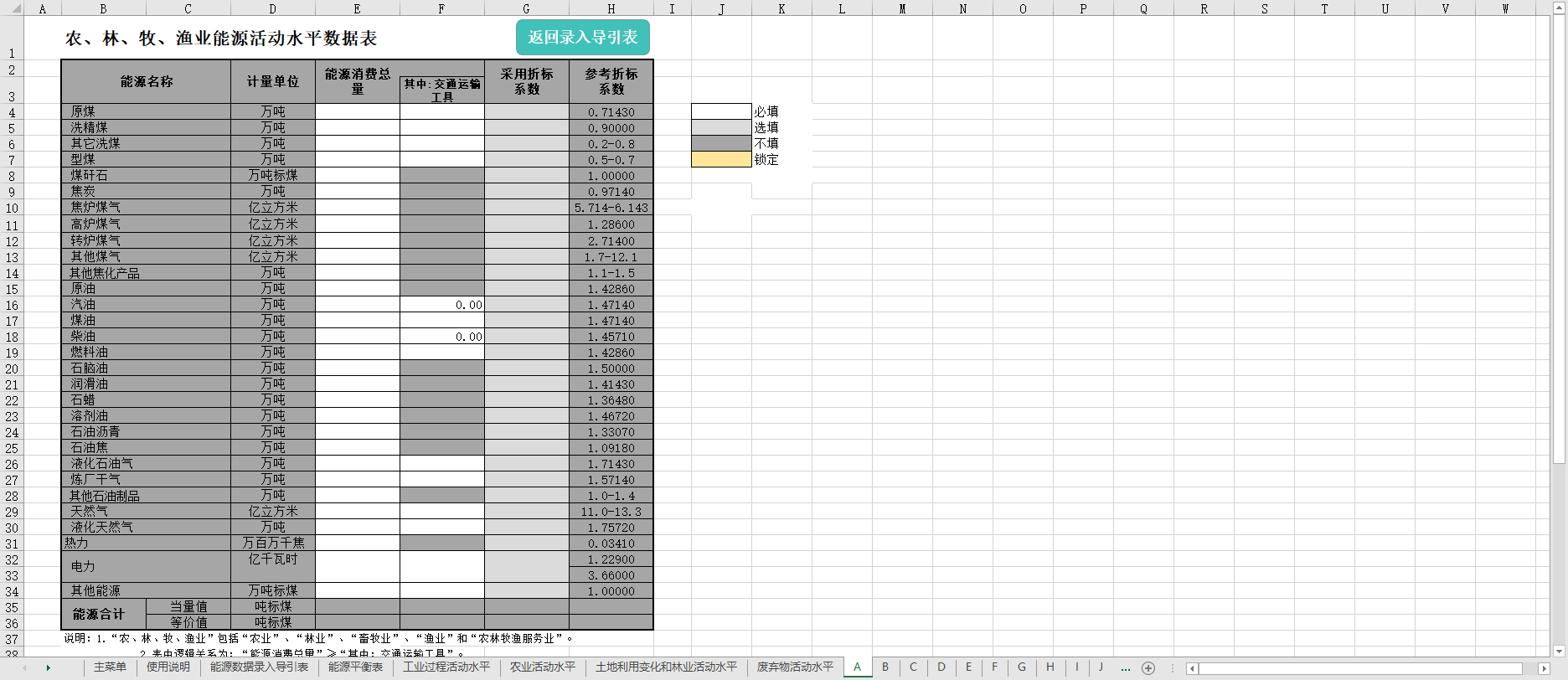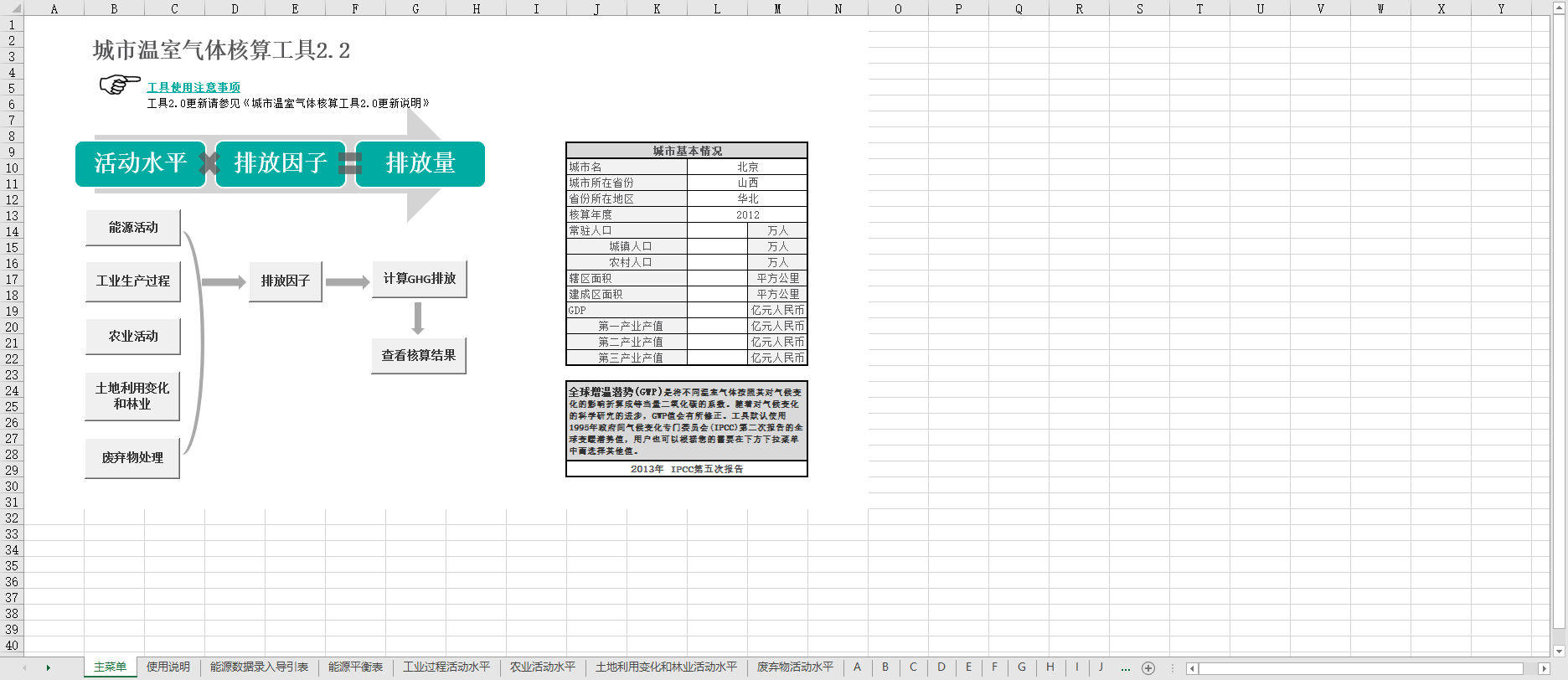 全行业的碳排放核算Excel自动计算表-城市温室气体核算工具2.2