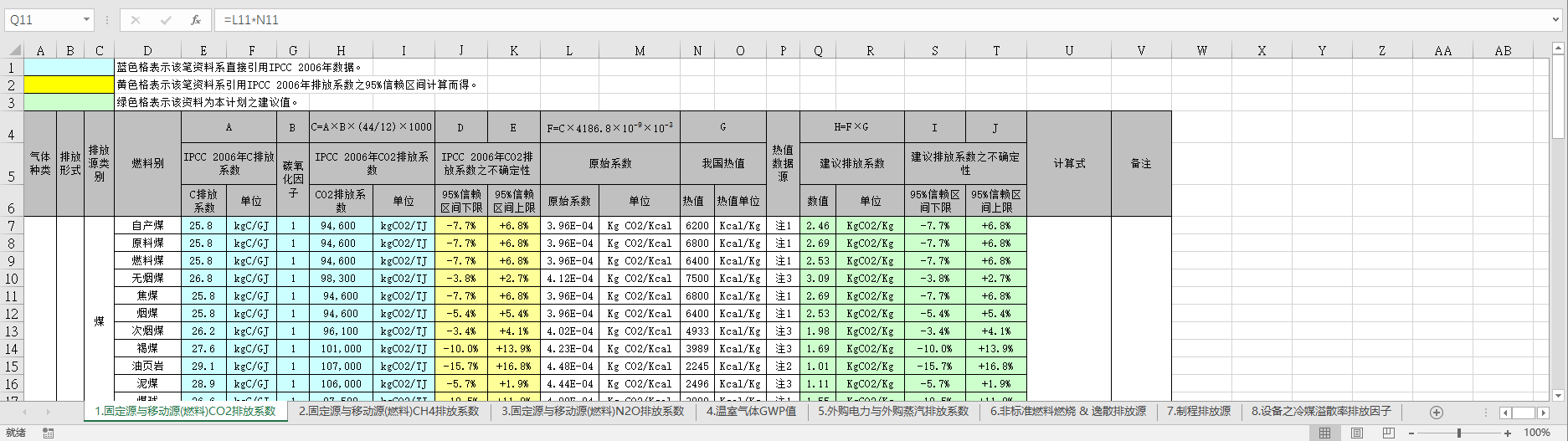 IPCC碳排放因子数据库固定源与移动源CO2N2OCH4排放系数温室气体GWP值外购电力蒸汽设备之冷媒溢散率排放因子