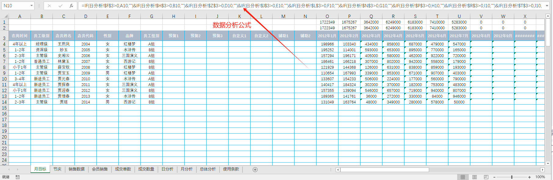 excel零售店铺数据分析月目标会员销售成交单数日分析月分析总体分析