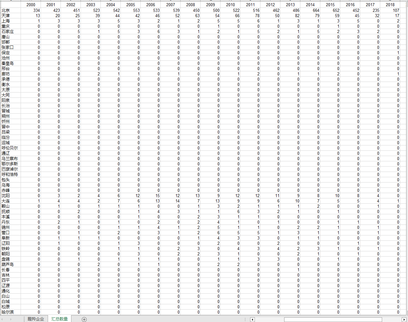 2000-2022年全国279城市雏鹰企业瞪羚企业独角兽企业创业创新企业数据