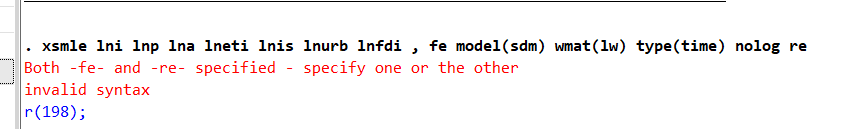我就学习前辈的经验改了一下代码,(随机效应re,固定效应fe)结果出现错误了,不知道是不是我代码改的有问题、