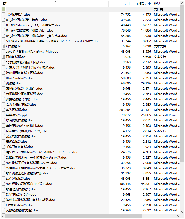 企业公司软件测试面试笔试题集合 软件测试面试题(测试基础).doc01_企业面试试卷(综合).doc01_企业面试试卷(综合)_参考答案.doc04_企业面试试卷(测试基础).doc04_企业面试试卷(测试基础)_参考答案.doc500强公司面试的经典正确与错误回答对比!!! 看看你的弱点.docC面试题.txtJava初学者都必须知道的六大问题.doc百度笔试题.txt北京博彦科技笔试+面试.doc北京大学计算机科学技术研究所.doc波尔世通的笔试+面试.doc测试人员面试题.doc测试题.doc常见的测试题(转贴).doc传视数码公司的面试题.doc汉端笔试题(7页).doc合力金桥的笔试题.doc华为面试题.doc经典逻辑题.ppt联合网视面试题.doc美国英网软件公司题目.doc面试考题(腾讯,招行等等).txt某公司的面试试题.doc奇虎面试题.doc千像互动的笔试.doc清华同方开发的面试题 (有兴趣的看一下了 !).doc缺陷的等级划分,一个经常被问到的问题.doc软件测试工程师笔试试题(大集合).doc软件测试工程师测试试题大集合(二)包括答案.doc软件测试工程师试题发布版.doc软件测试试题.doc软件评测复习知识点(小颖).doc软通动力面试笔答.doc瑞星笔试题(15道).doc神州泰岳测试试题(笔试)转贴.doc时力科技面试题.doc瓦瑟笔试题(限男性).doc喜安科 面试题.doc性能计算公式.txt亚控科技比试题.doc一道测试notepad笔试题.doc一道数据库的笔试题目.doc一个外包测试公司的笔试题!.doc一家通讯公司的面试题目.doc英文自我介绍大全.doc英语面试.doc英语面试题.doc有意思的逻辑题.doc中软的面试题(转贴).doc