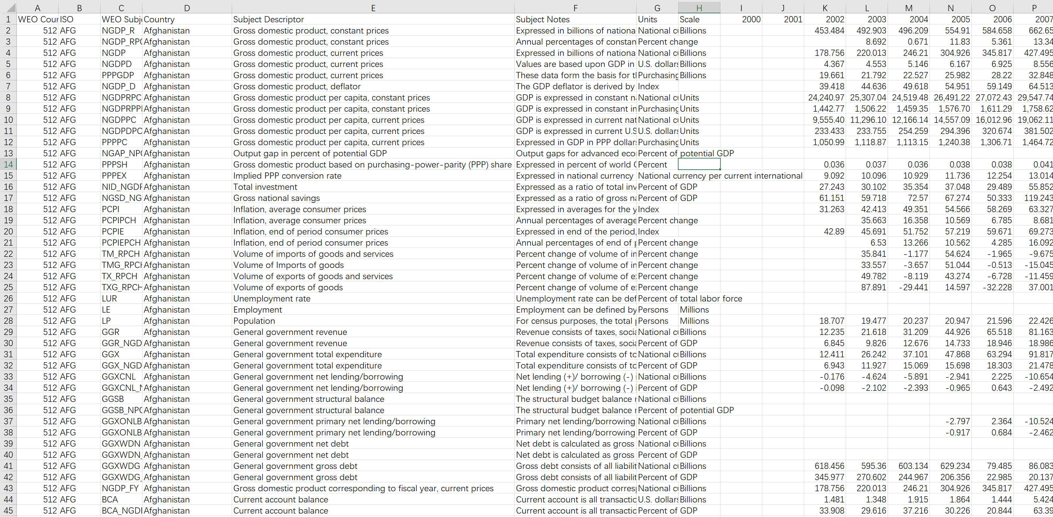 2000-2022年数据!各国GDP、债务、人口、投资、失业率、进出口等指标!!包括世界200多个国家的数据,Excel文件,包含国家名称、国家代码、变量说明和数据来源等!!时间序列数据!