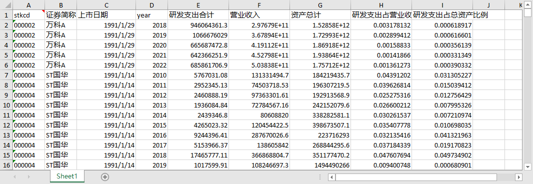 stkcd 证券代码 证券简称 上市日期 year RD1 RD2 Patent1 Patent2 Patent3 Patent4 Patent_Award1 Patent_Award2 Patent_Award3 Patent_Award4 InnoEff1 InnoEff2