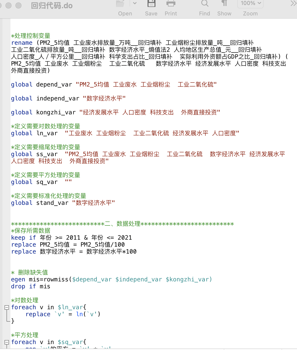参照张翱祥(2022)的做法,对来自南方经济《中国城市数字经济发展对环境污染的影响及机理研究》一文中的基准回归部分进行复刻。
