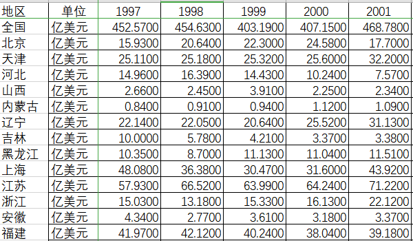 实际利用外商直接投资30个省(除港澳台藏)1997-2021年数据