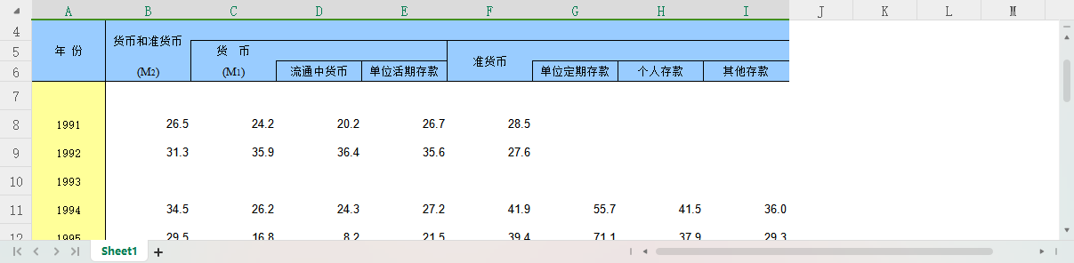 (各年度)表头信息大致如下:
