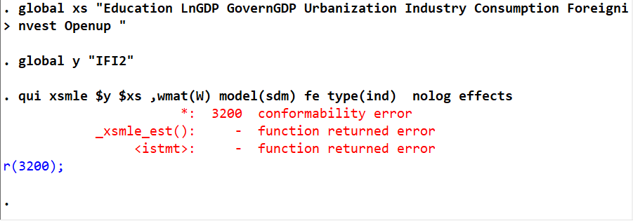 suriccc 发表于 2023-11-29 15:27 用空间杜宾模型发生以下报错是为什么呀?是因为数据有部分年份缺失吗?