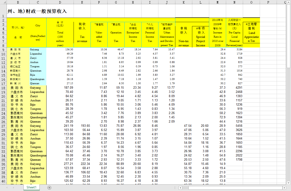 贵州各地市州财政一般预算收入2010-2021税收增值税企业个人所得税非税专项收入