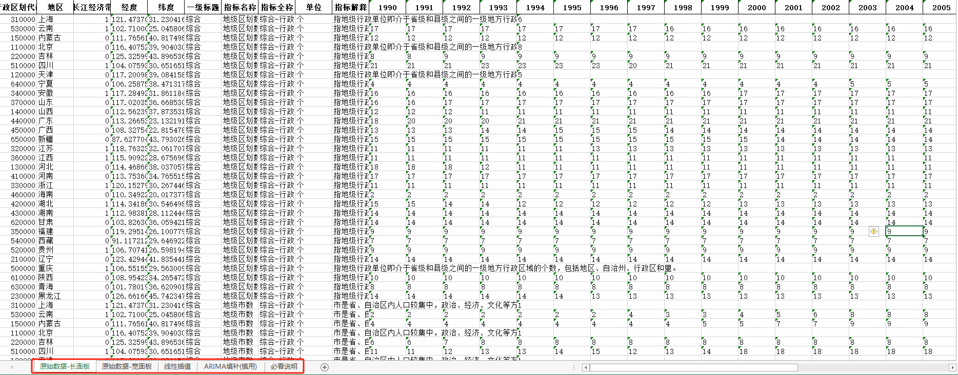 | 地级区划数 | 指地级行政单位即介于省级和县级之间的一级地方行政区域的个数,包括地区、自治州、行政区和盟。 |