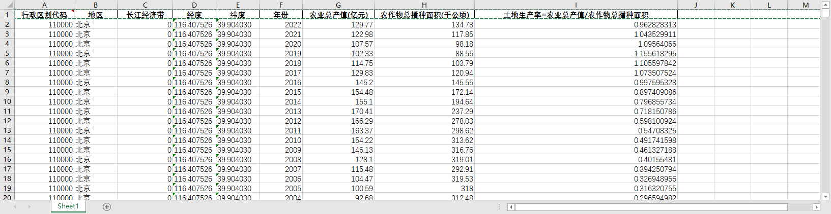 全国31个省份2000-2022土地生产率农业总产值农作物总播种面积