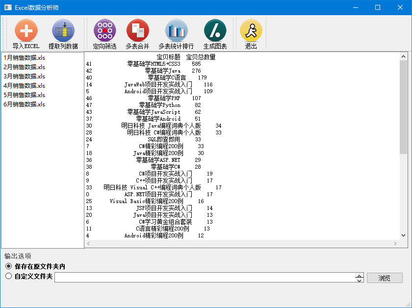 说明:“输出选项”可以选择数据分析结果要保存的位置,默认是程序所在文件夹。