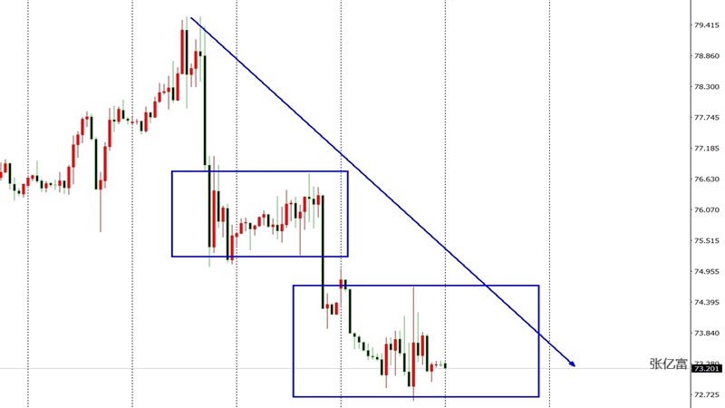 原油价格的波动令人瞩目。日线图上,原油已经连续三天收录阴线,似乎正在积蓄力量,准备向下突破。反弹尝试似乎并未能改变原油的弱势格局,反而使其更加强化了重新回落到低位的预期。本周,原油有可能进一步下探低点,而目前仍处于整理蓄势阶段,形势并不乐观。4小时图上,原油价格在上轨79.50美元处遭遇阻力,这是区间的高点。上周试探该高点后,价格开始向下轨靠近,暗示着本周初可能会反复试探低点的支撑强度。只有当价格成功突破这一低点,才能打开进一步下跌的空间。目前,4小时图在76.70美元处二次受阻回落,显示短线正在测试低点。关注下方支撑72美元一线,这是近期原油价格的关键支撑位。如果这一线被打破,那么原油价格的下行空间将被打开,可能会进一步下跌。综合以上分析,张亿富认为:原油偏空运行中,今日操作上考虑反弹做空为主,上方关注75.0-76.0美元阻力,下方关注72.0-71.0美元支撑。