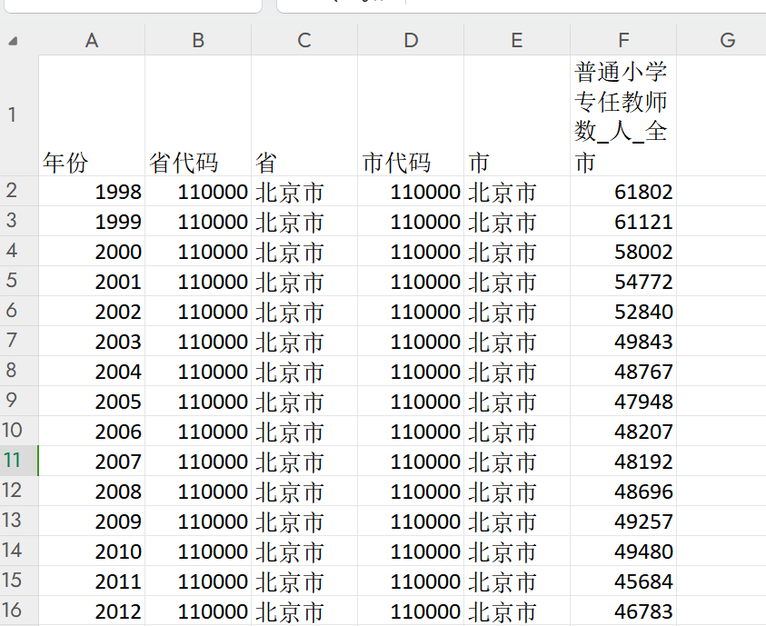地级市普通小学专任教师数_人_全市1998-2020.xlsx