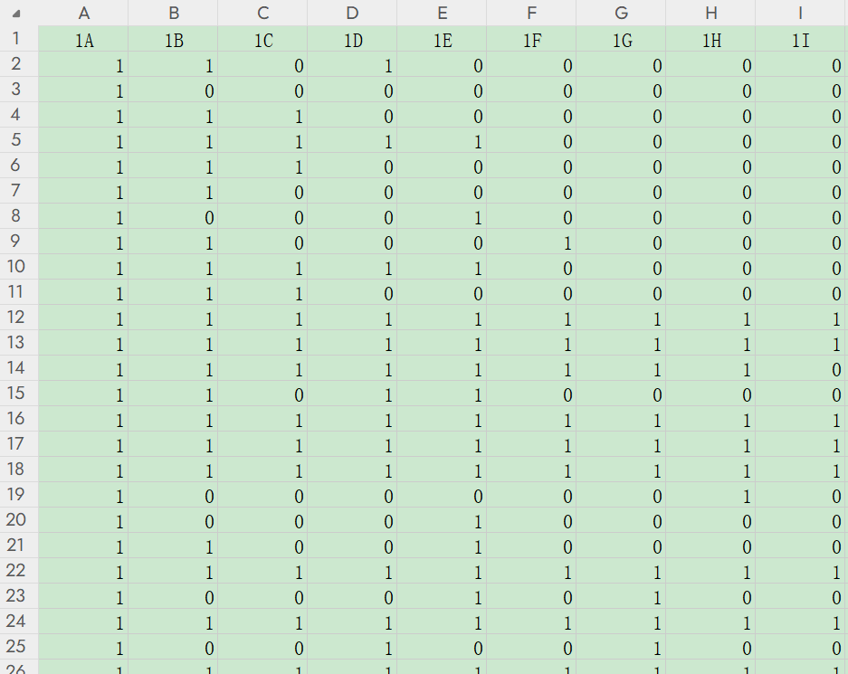 nieqiang110 发表于 2023-12-9 15:42 我不熟悉Stata,给个思路吧。对1A:1I求和,值大于N,就有N项符合条件。如果需要R代码,我可以给你。