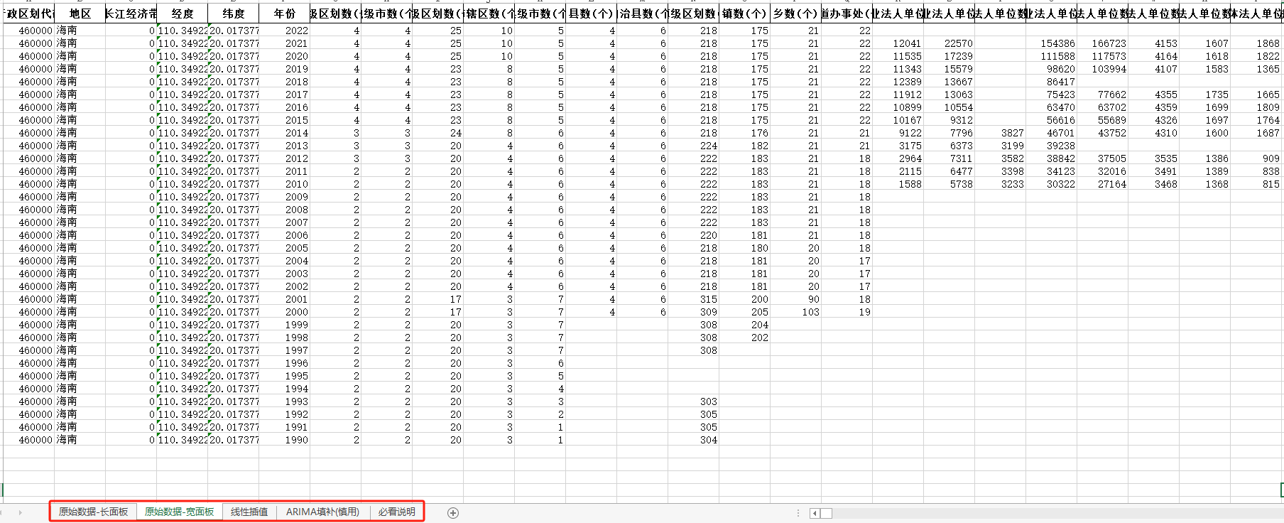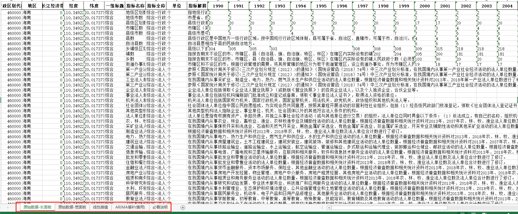 1990-2022年海南省中国统计年鉴面板数据长面板+宽面板含指标说明ARIMA填补无缺失