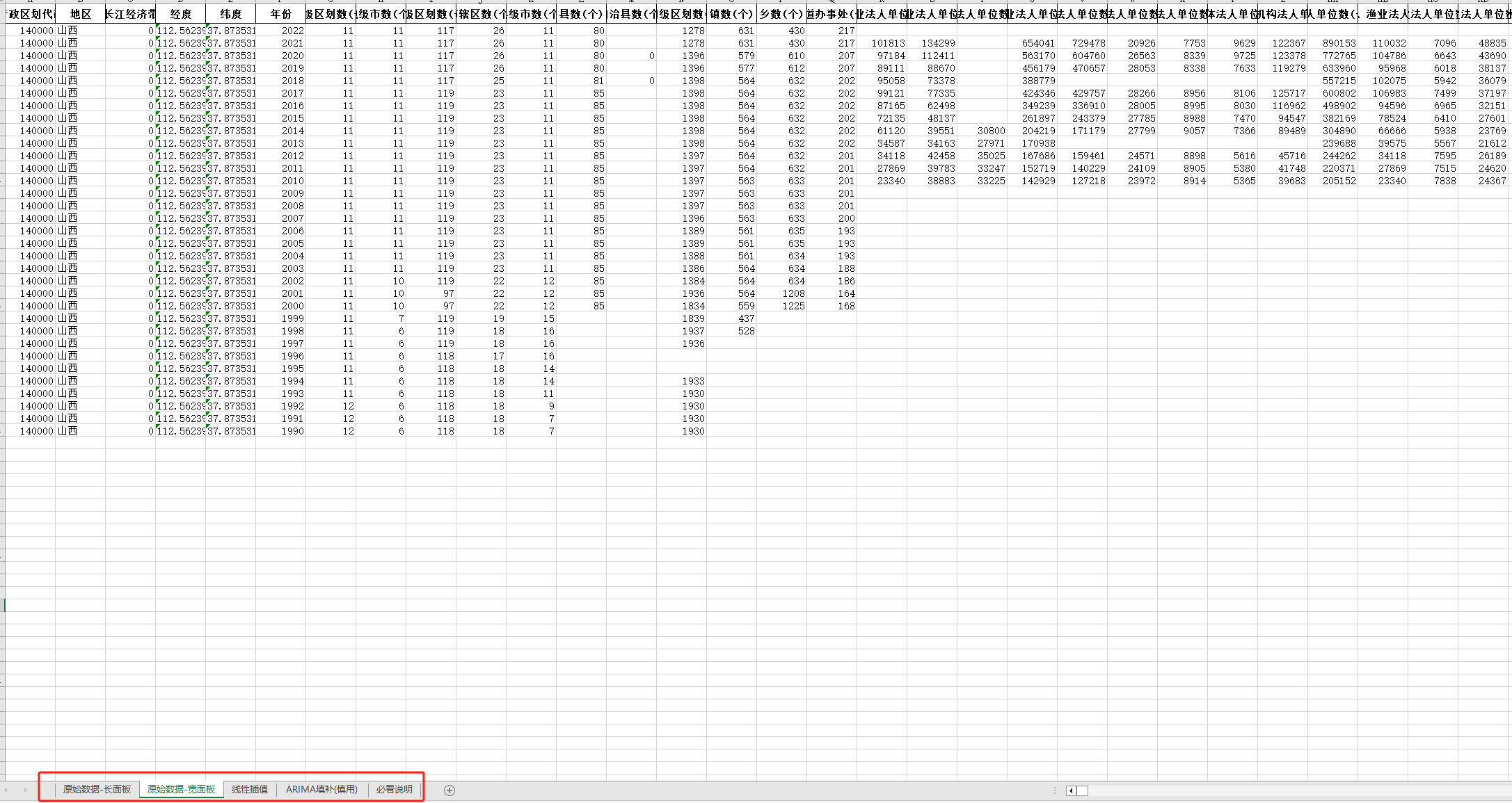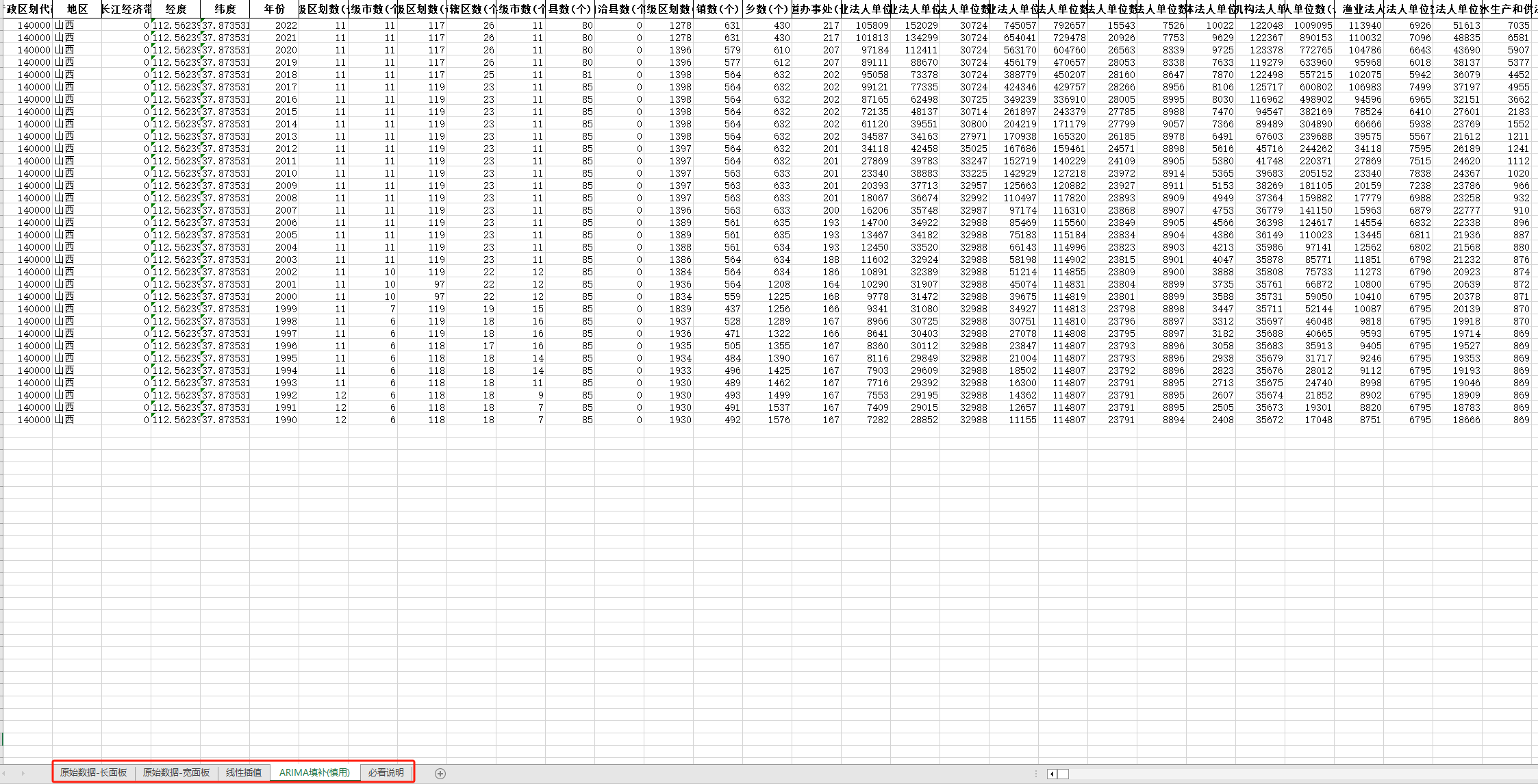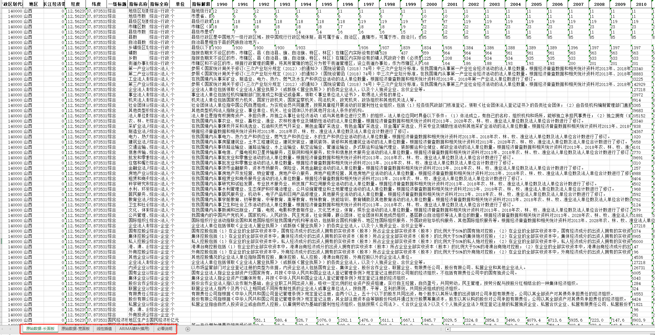 1990-2022年山西省中国统计年鉴面板数据长面板+宽面板含指标说明ARIMA填补无缺失