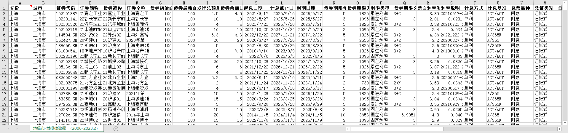 全国各地市州地级市城投债发行明细数据2006-2023城投债券余额利率期限面值实际发行人
