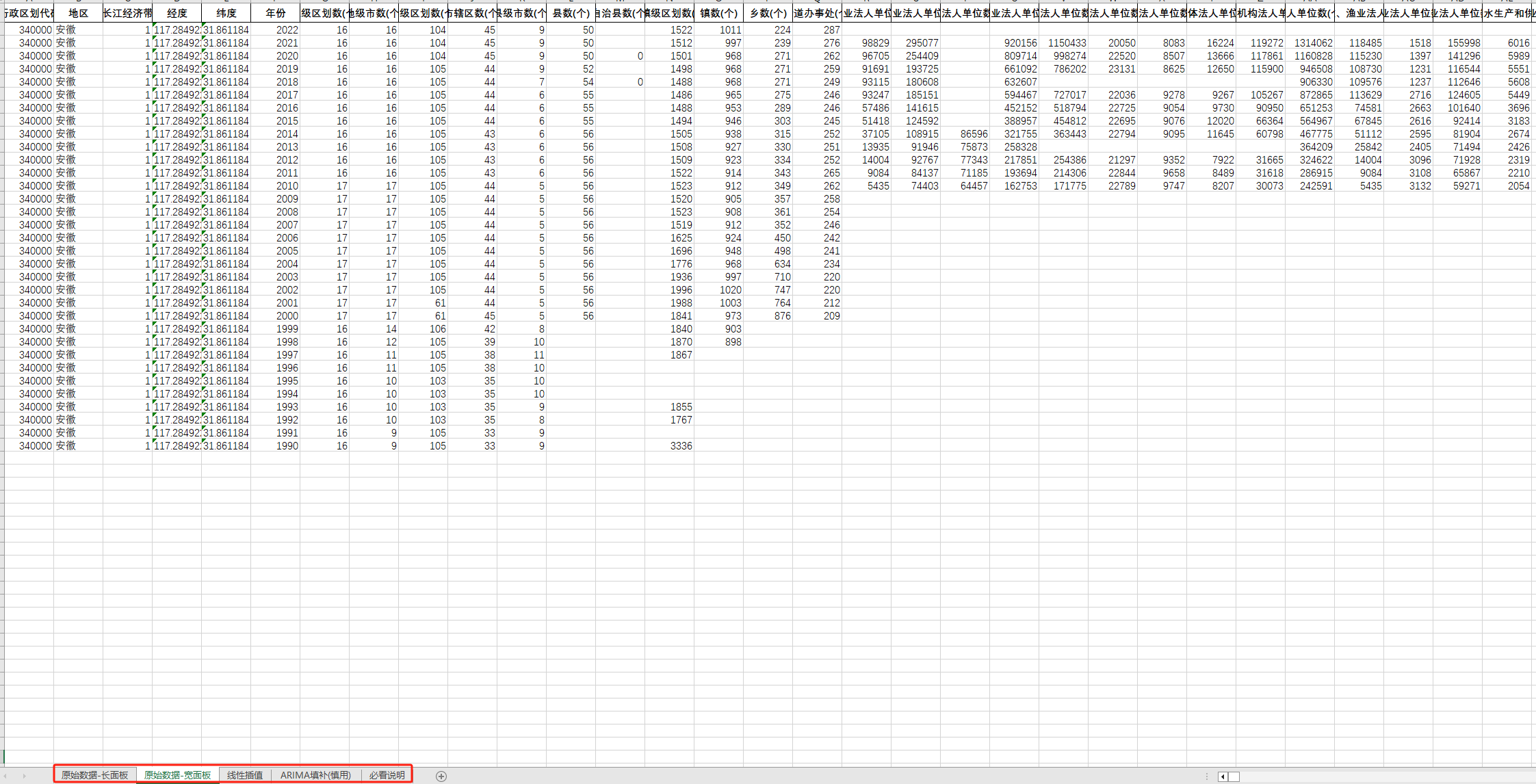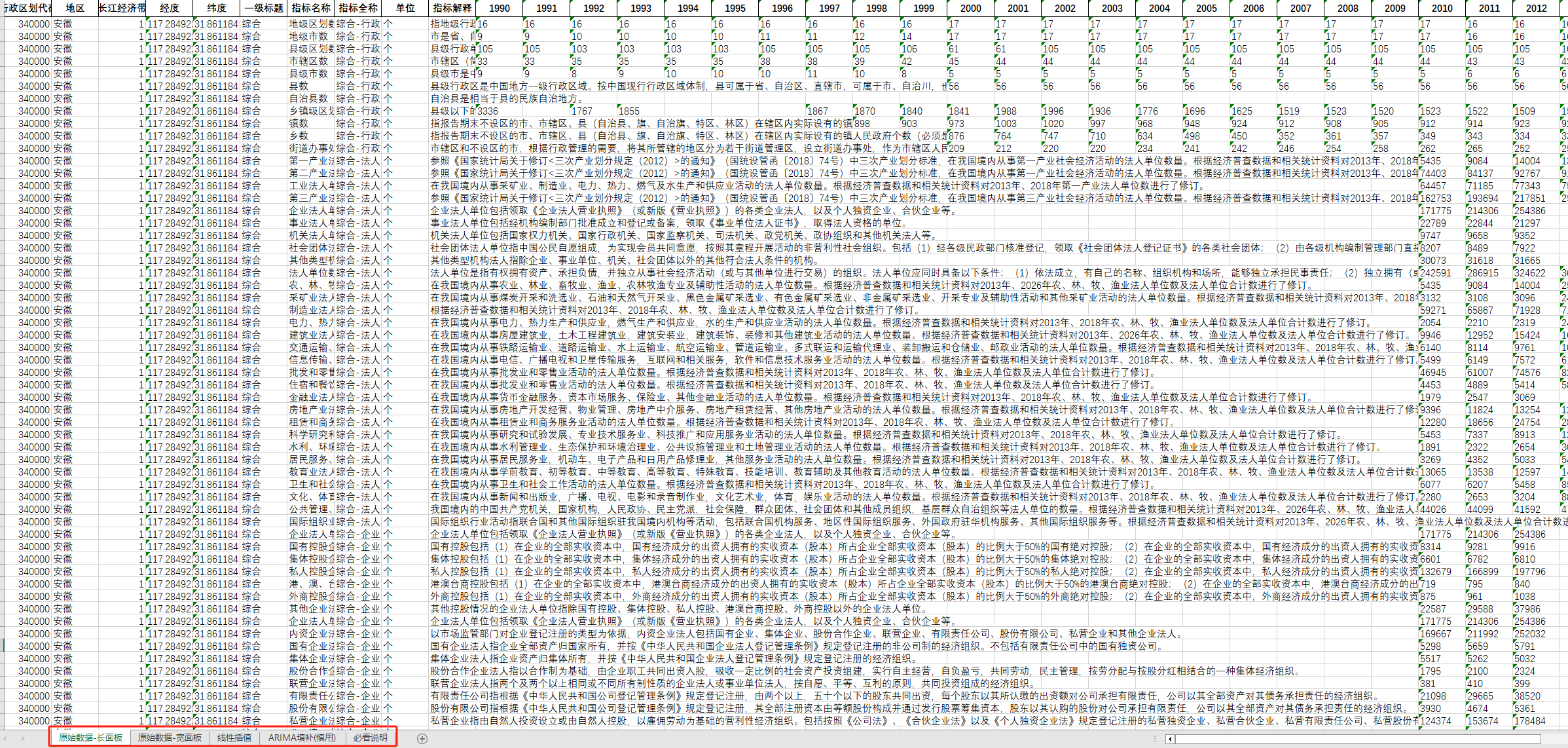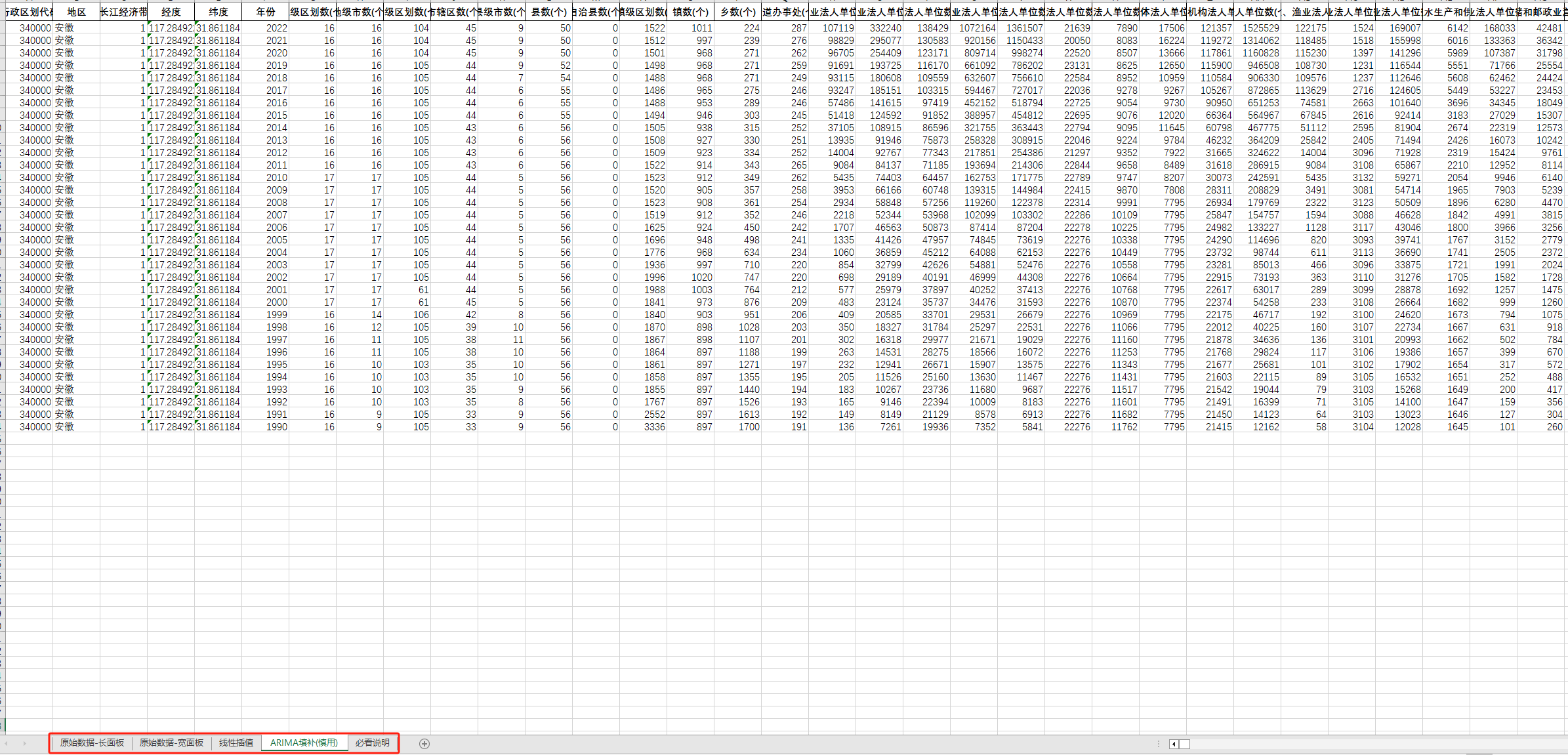 1990-2022年安徽省中国统计年鉴面板数据长面板+宽面板含指标说明ARIMA填补无缺失