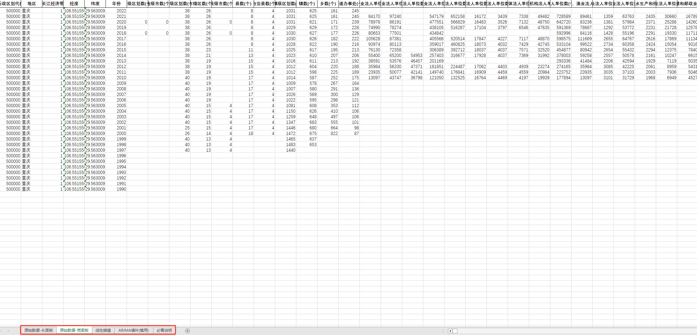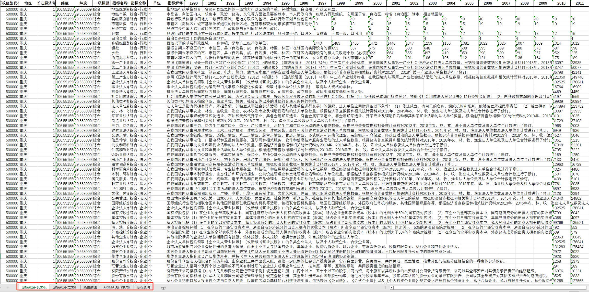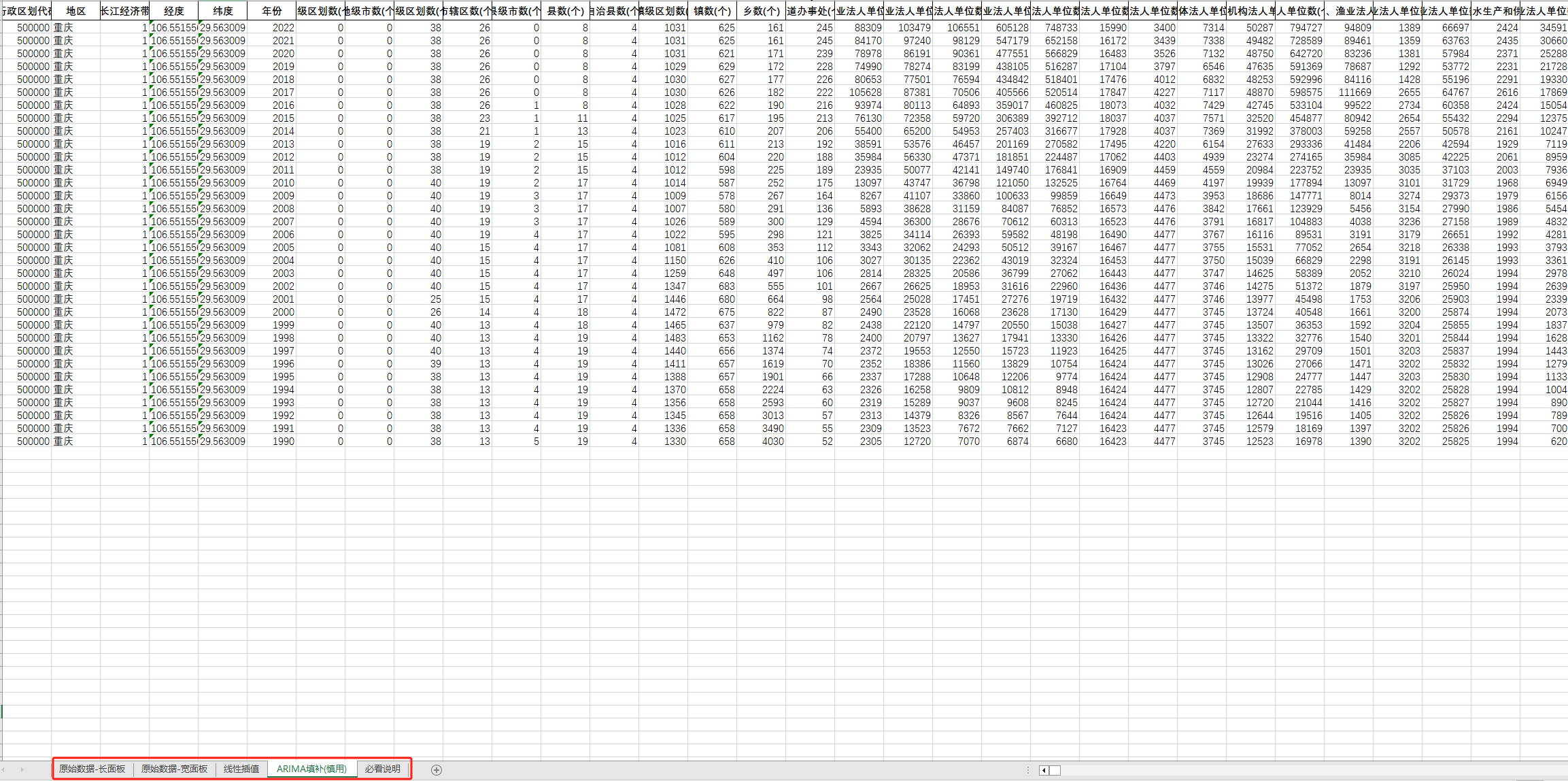 1990-2022年重庆市中国统计年鉴面板数据长面板+宽面板含指标说明ARIMA填补无缺失