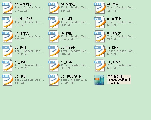 该报告分16个主要的贸易国家,另附有农产品分册,均是本人逐一下载而来,共享给大家,赚个人工费。