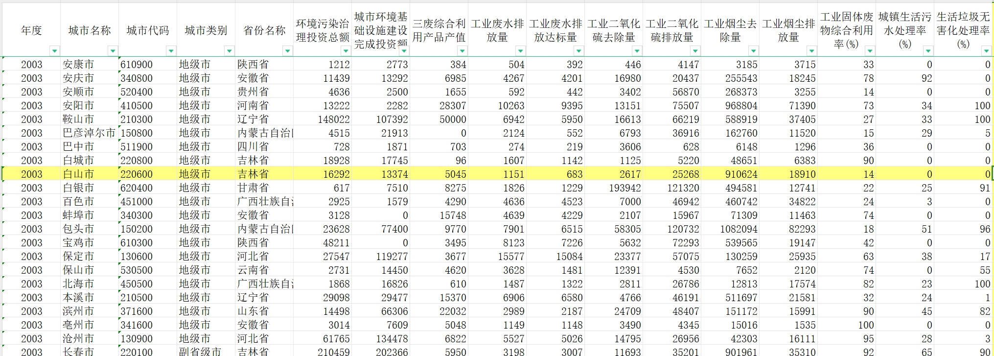 全国各地级市环境和废物排放指标面板数据.xlsx