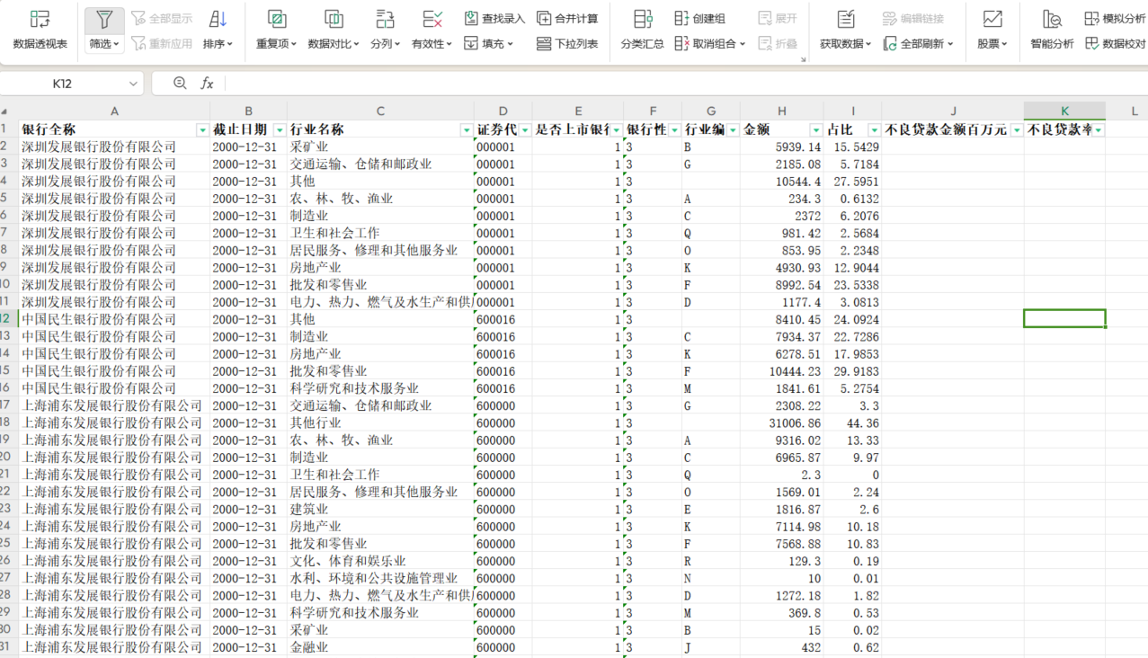 2000-2022年国内银行对各行业的银行贷款投向投资数据