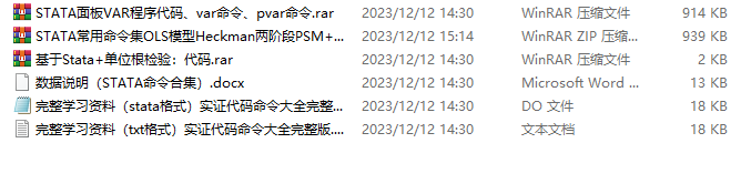 STATA常用命令集OLS模型Heckman两阶段PSM+DID模型固定效应模型中介效应模型程序源代码