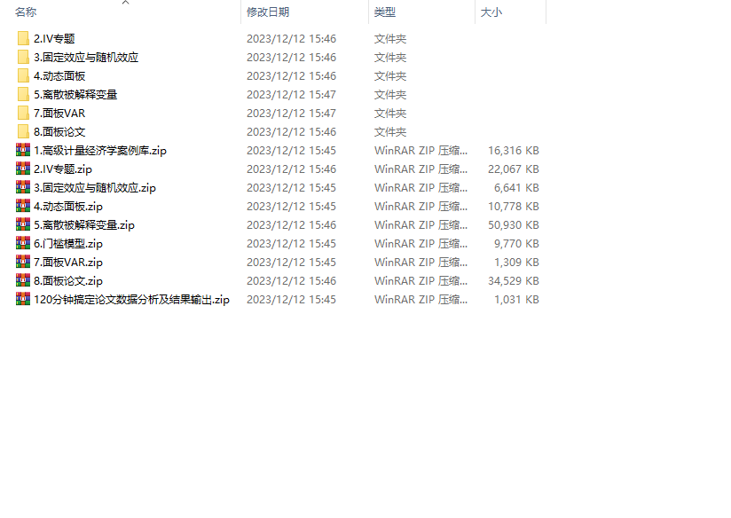 (1)高级计量经济学案例库包含以下资料:| 1、一元线性回归 |