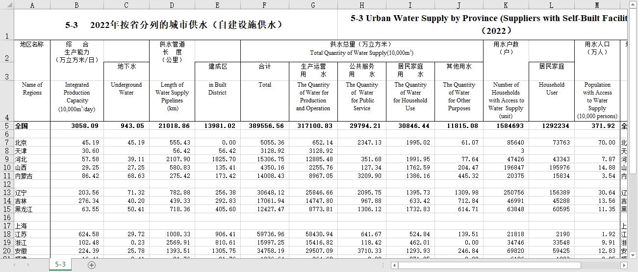 - 5-3 2022年按省分列的城市供水(自建设施供水).xlsx