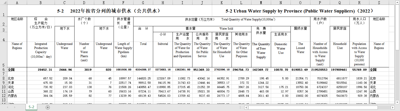 - 5-2 2022年按省分列的城市供水(公共供水).xlsx