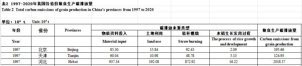 中国粮食生产碳排放量及动态变化数据1997-2020.xlsx