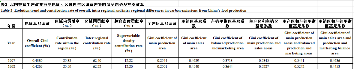 表3 我国粮食生产碳排放的总体、区域内与区域间差异的演变态势及其贡献率
