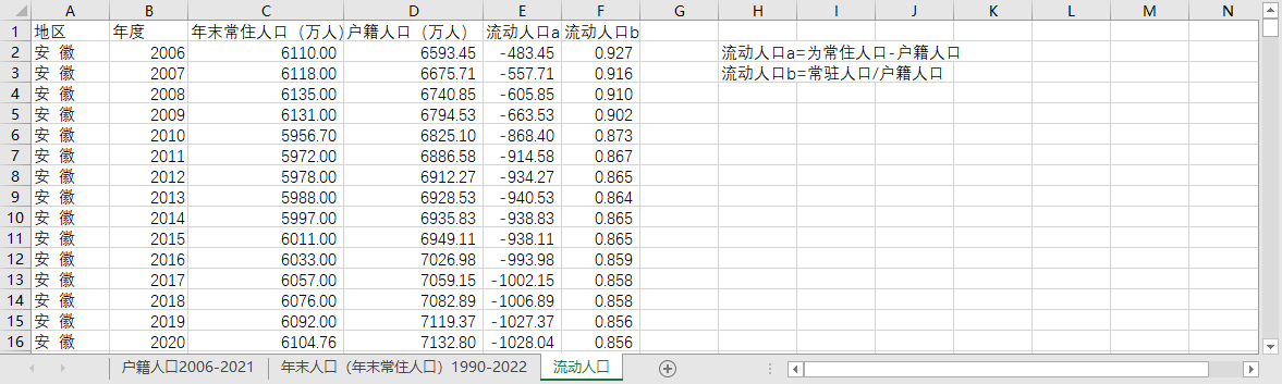省流动人口2006-2021,其计算公式为: