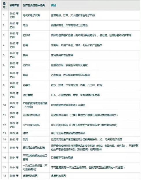 法国EPR生产者责任延伸到底有多少项?包含哪些产品?