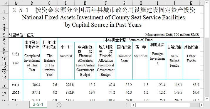2-5-2 全国32个省份按资金来源分全国县城市政公用设施建设固定资产投资(2006-2022).zip