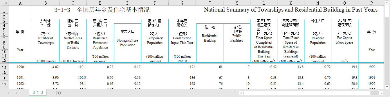 手工整理了最新的中国城乡建设统计年鉴数据年度是2022-2006的各个excel指标表,形成各个指标文件的多年度数据,便于多年度之间的分析比对。同时,excel指标文件可以下载、复制copy、黏贴等再利用来进行数据分析挖掘,减轻大量的数据查找和数据合并表处理工作,省时省力!
