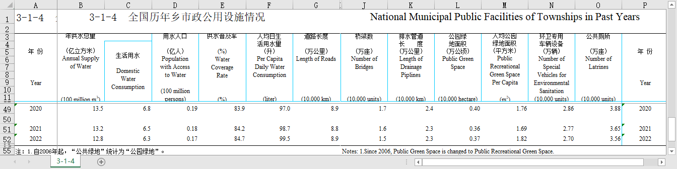 手工整理了最新的中国城乡建设统计年鉴数据年度是2022-2006的各个excel指标表,形成各个指标文件的多年度数据,便于多年度之间的分析比对。同时,excel指标文件可以下载、复制copy、黏贴等再利用来进行数据分析挖掘,减轻大量的数据查找和数据合并表处理工作,省时省力!