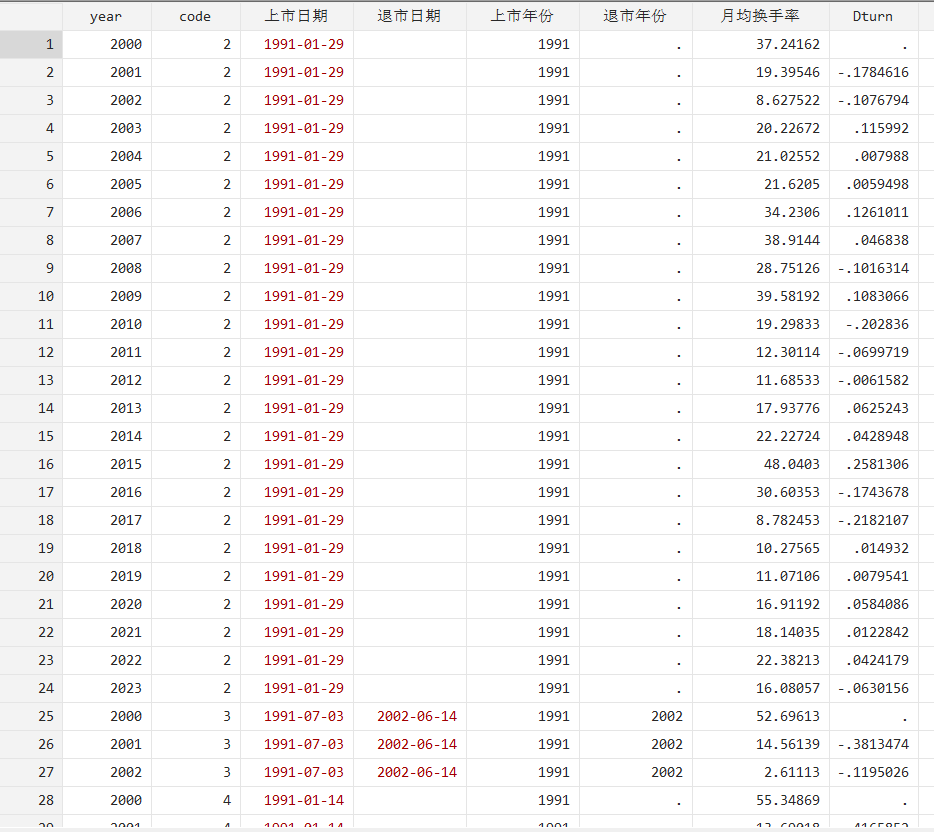 第t年月均换手率与第t-1年月均换手率之差(年度数据)
