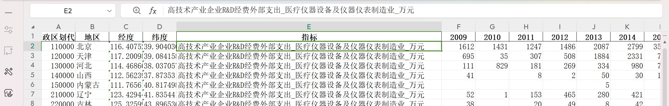 分省高技术产业企业R&D经费外部支出_医疗仪器设备及仪器仪表制造业_万元2009-2020(.xlsx