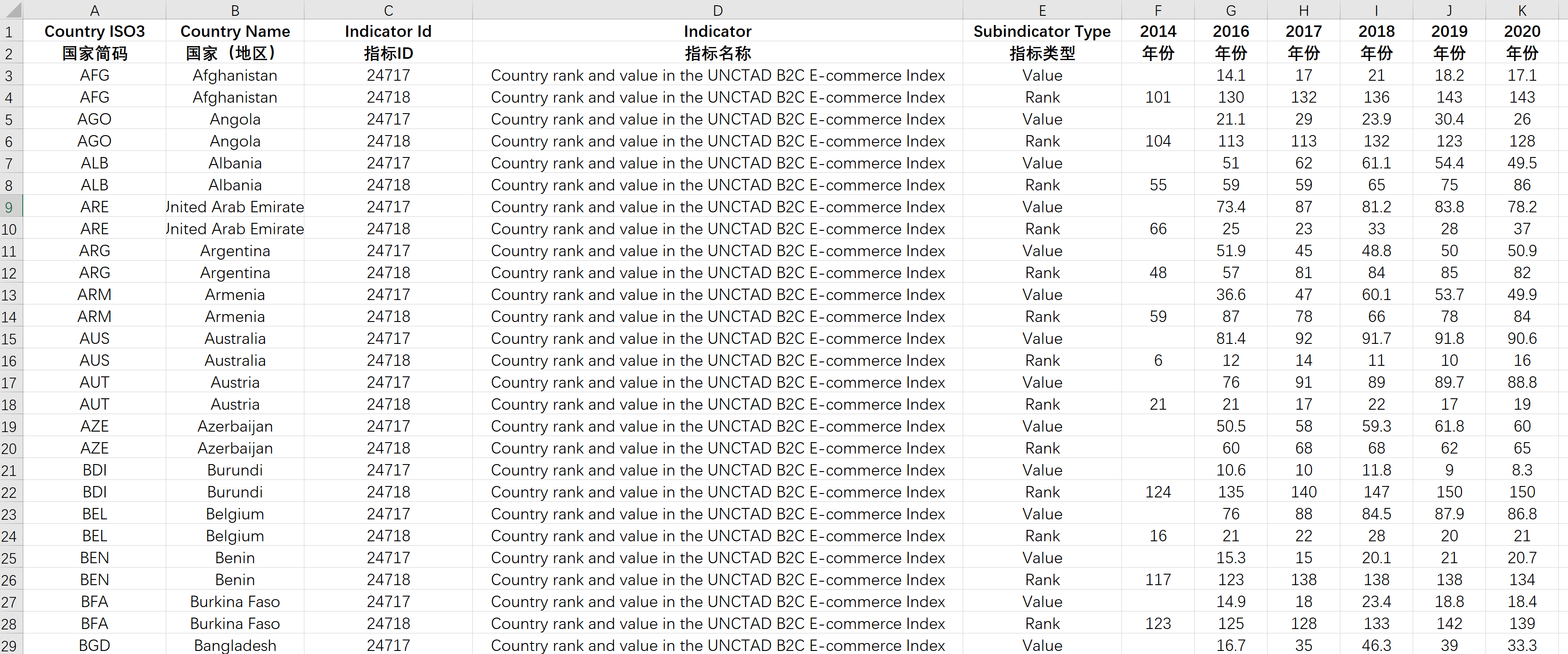 UNCTAD B2C电子商务指数