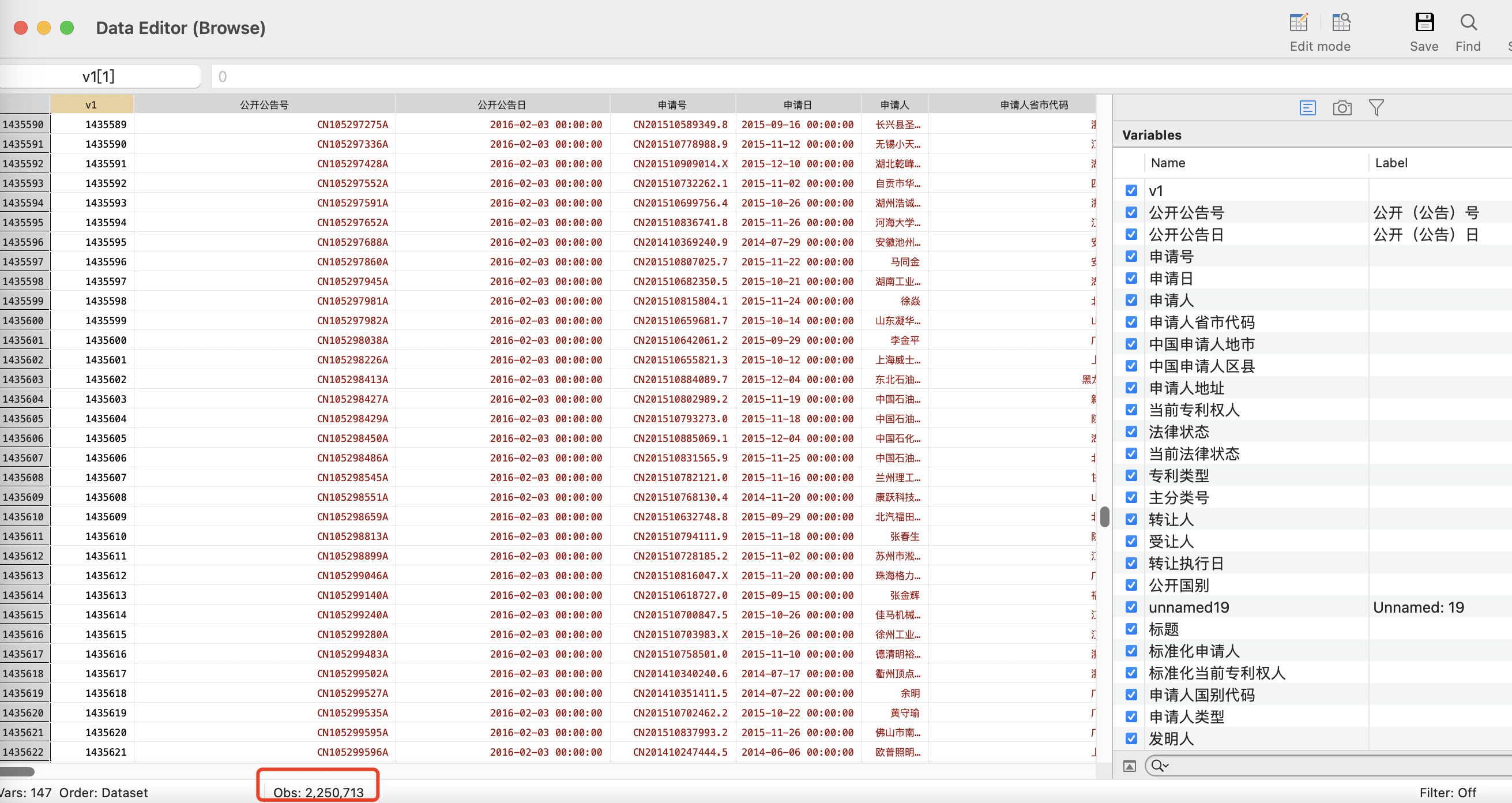 数据名称:中国全国225万+专利转让数据转让申请人受让人设涉及方法律状况交易信息专利价值