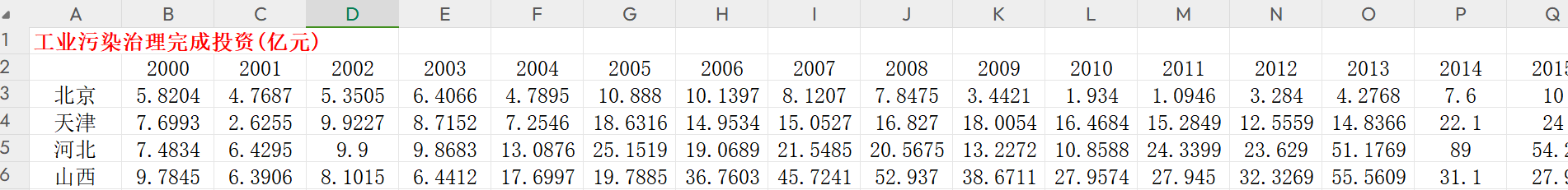 2004-2021年30省工业污染治理完成投资数据(无缺失)