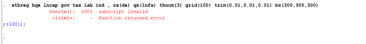 xthreg运行错误是什么原因?求各位大神帮帮忙。
