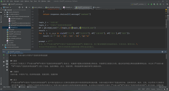 由于OpenAI为我们提供了可以输入更多内容方案,即通过API调用gpt-3.5-turbo-16k模型,我们可以直接把作者、发表时间、文章的来源、文章的篇名、文章的摘要一股脑地丢进去,让GPT在生成综述的同时能够准确地生成参考文献。这里仅展示其可以生成参考文献,因此参考文献的格式并不标准。如果有需求可以通过prompt让参考文献格式更加标准。