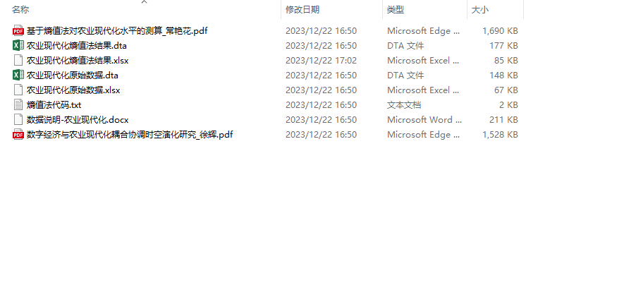 [1] 常艳花,常乐,王金桃等. 基于熵值法对农业现代化水平的测算 [J]. 南方农机, 2023, 54 (19): 38-40+48.