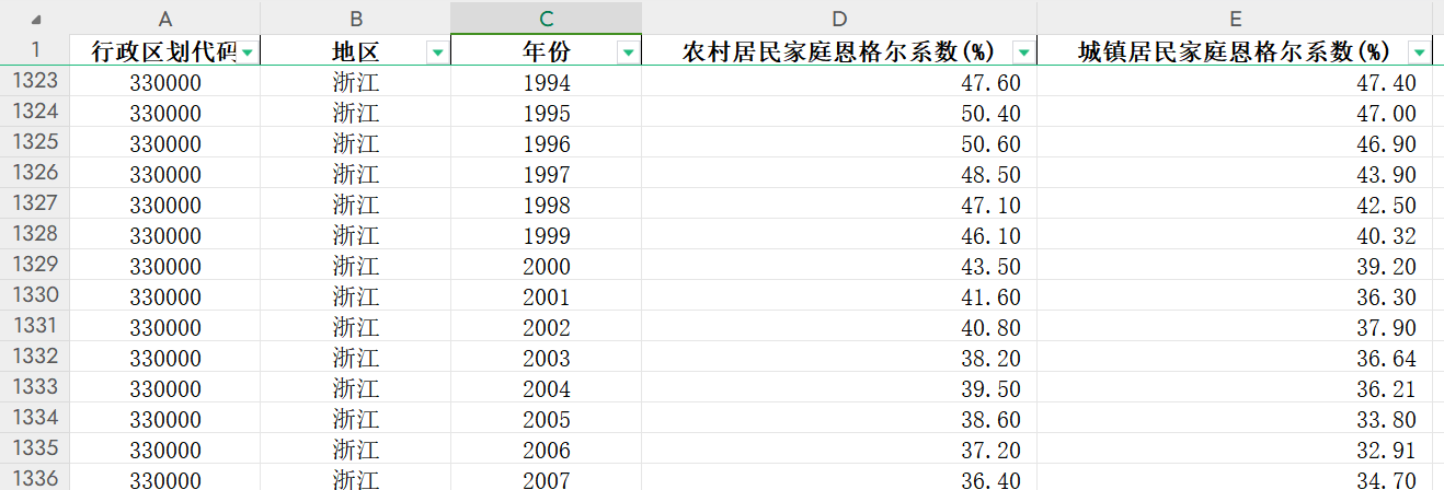 31省份恩格尔系数(农村、城镇),1978-2022年,整理好的面板数据,excel版