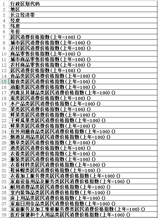 数据年度1990-2022全国31省中国统计年鉴面板数据-价格指数(长面板+宽面板)填补无缺失