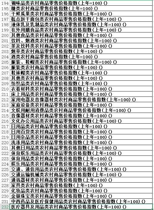 本数据为价格指数指标数据。
